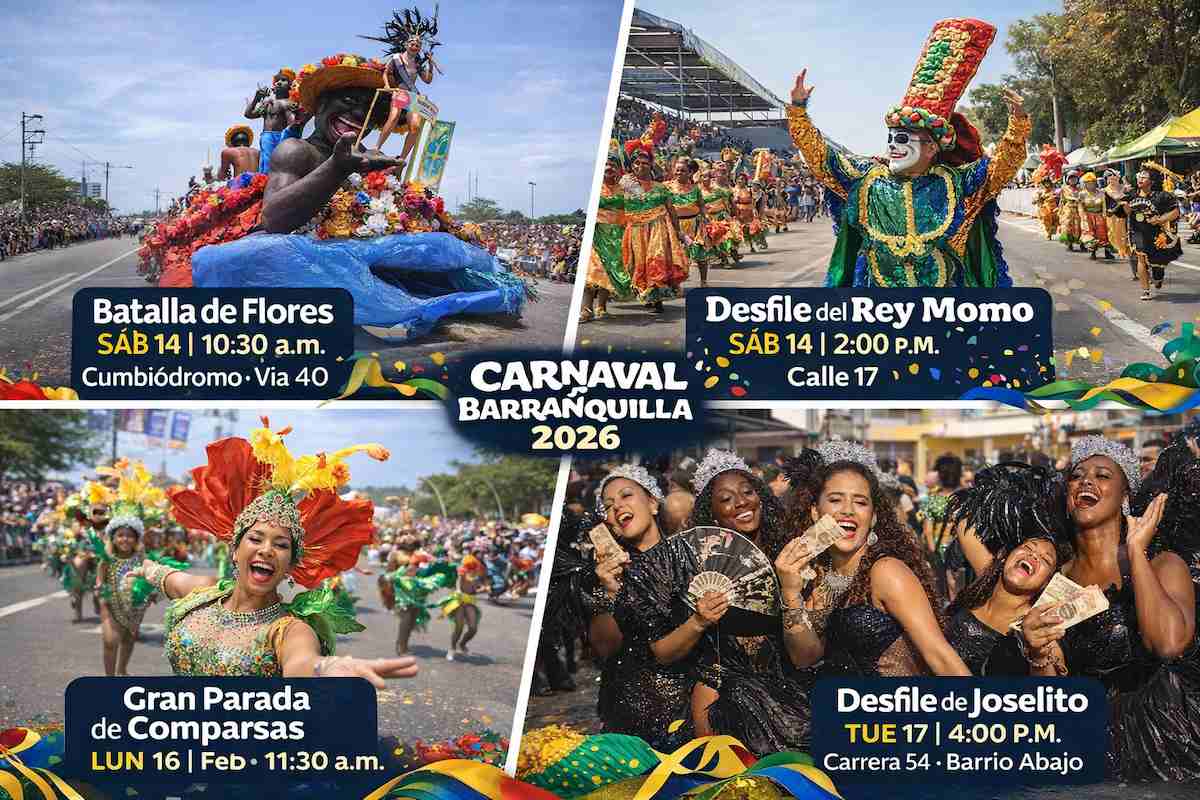 Con los nuevos horarios confirmados, asistentes y visitantes podrán planificar su presencia en cada uno de los eventos que integran la agenda principal del Carnaval de Barranquilla 2026, una celebración que durante cuatro días concentrará los desfiles más representativos de la ciudad en escenarios tradicionales como la Vía 40, la Calle 17 y la carrera 54.
