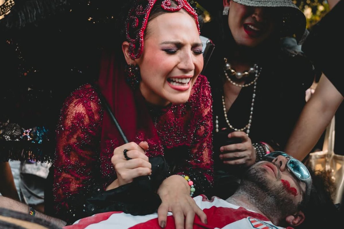 Las viudas se multiplicaron en ambos desfiles, pero también lo hicieron las acusaciones simbólicas. No eran lamentos tímidos: eran reclamos en voz alta, señalamientos con dedo extendido y dramatizaciones que competían por robarse la escena. Supuestas amantes de Joselito gritaban que la reina tenía que responder, otras fingían desmayos reclamando herencia, mientras un grupo de “viudas” improvisaba escenas de celos y traición alrededor del féretro. El duelo parecía una novela callejera representada a cielo abierto. El ambiente oscilaba entre la parodia, el chisme amplificado y un juicio popular que se alimentaba del espectáculo.