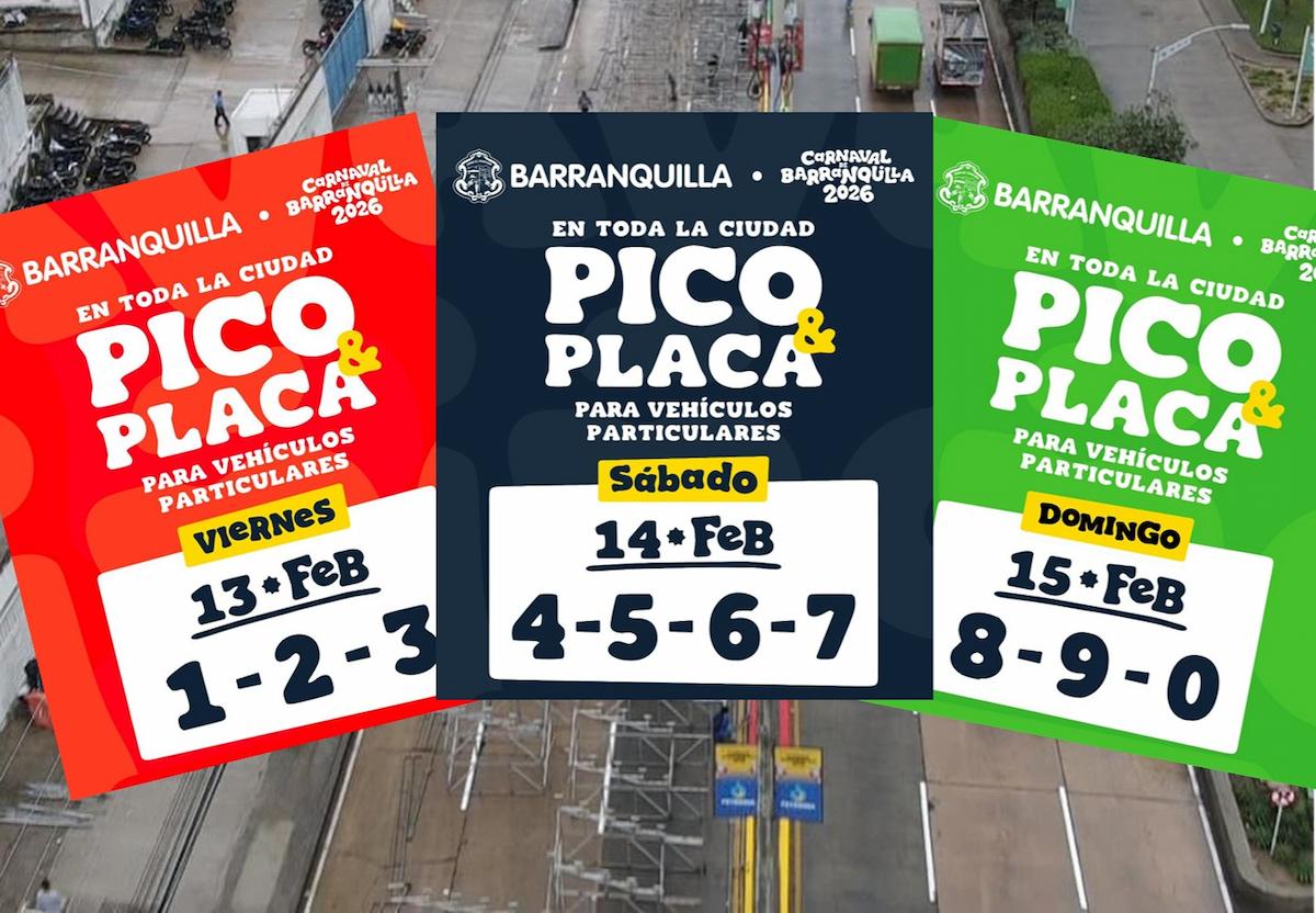 Barranquilla — La Alcaldía implementará pico y placa para vehículos particulares del 13 al 16 de febrero de 2026 durante el Carnaval, según el Decreto 0036, medida que regirá en toda la ciudad con horarios y dígitos específicos por día.